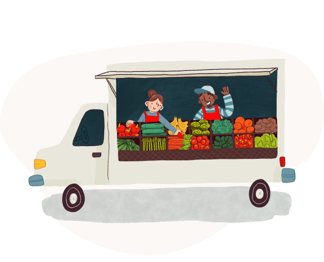 We’ve designed human-centered mobile produce market trucks. One of our turn-key vehicles can serve up to 750 families every week through an accessible, dignified, and festive food shopping experience.