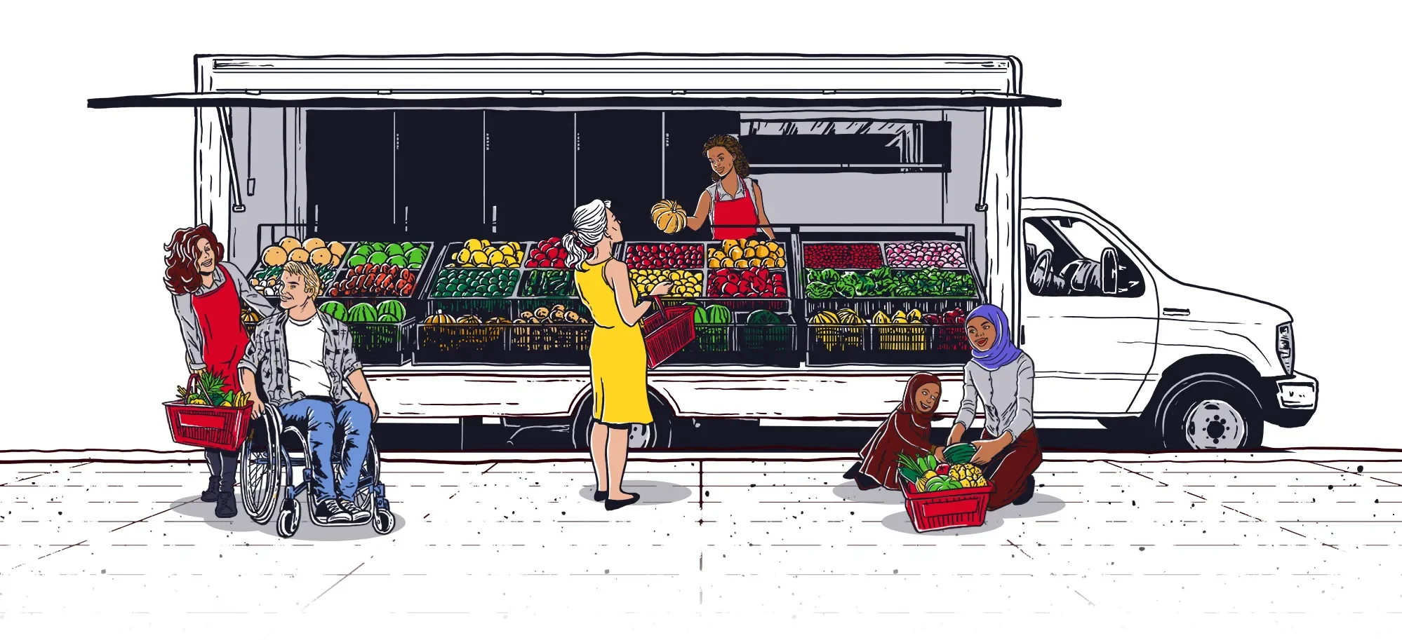The Farmers’ Truck offers a key-in-hand mobile market vehicle solution, helping food security organizations increase access to fresh, healthy food in their communities.